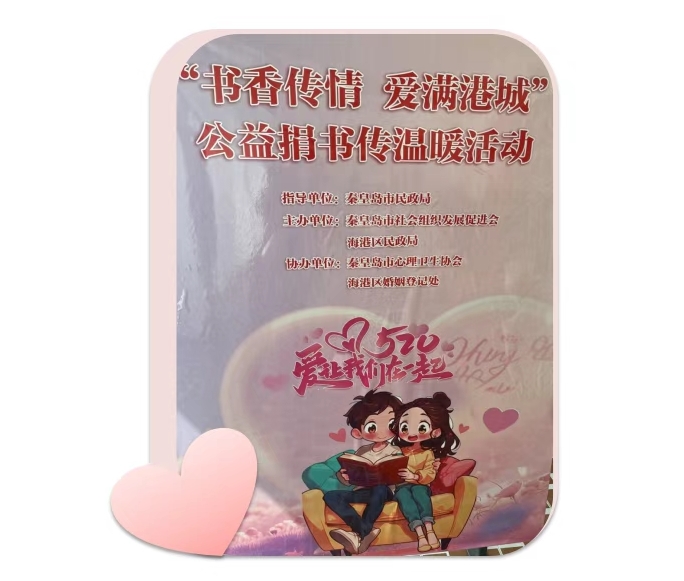 在充滿愛意的“520”這一天,由秦皇島市民政局指導,秦皇島市社會組織發展促進會、海港區民政局主辦,海港區婚姻登記處、秦皇島市心理衛生協會協辦的“書香傳情 愛暖港城”——婚姻登記新政策解讀與公益捐書行動在海港區婚姻登記處溫馨啟幕。眾多新人與市民共同參與,現場愛意與書香交織。