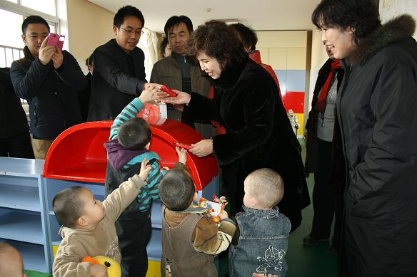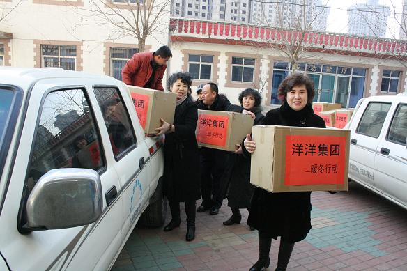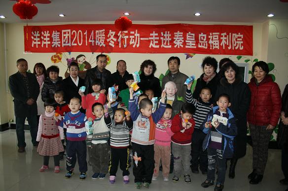 本次活動是洋洋集團由2009年就開始主辦的“溫暖寒冬、奉獻愛心”捐贈活動,如今已經是第六屆了,此項活動深受洋洋集團廣大商戶、以及洋洋集團全體員工的擁護,他們積極響應,踴躍捐款捐物達萬余元,采購了羽絨服、棉衣、奶粉、餅干、水果、糖果、玩具、內衣等物品。市福利院張院長及全體工作人員對暖冬行動給予了高度評價,對洋洋集團以及熱心公益事業的好心人表示了衷心感謝和熱烈歡迎!劉總一行在張院長的陪同下把糖果、玩具、餅干等物品親手送到孩子手上,抱起殘疾兒童劉總目光慈愛,表情凝重,詳細詢問孩子的健康和生活情況,對福利院的員工稱贊道:你們真的很偉大,平凡的工作中付出特別偉大的愛,你們就是最可愛的人!并對張院長承諾在福利院有困難需要幫助的時候一定會伸出援手。