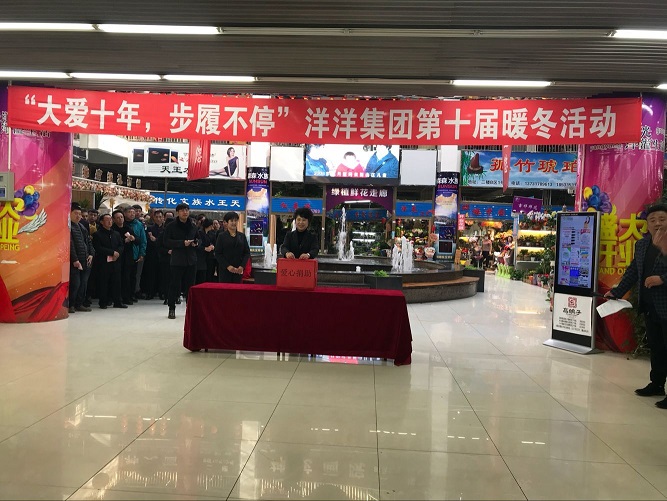 2017年11月20日,在蕭瑟寒冷的冬日,秦皇島市新洋洋花卉商場內,洋溢著春意般的溫暖,“秦皇島洋洋集團第十屆溫暖寒冬愛心助學”募捐活動現場正在進行,“新花卉、購物中心、古玩城、馬術俱樂部、洋洋植物園、網絡公司、古玩收藏商會、女企業家協會”等共近千名商戶與員工及各界愛心人士共同參與此次愛心捐助活動中,本次籌集愛心善款約5萬多元。