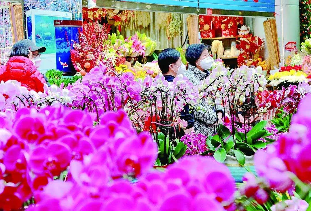 ?春節期間,洋洋花卉市場里擺滿了種類繁多的年宵花,空氣里彌漫著陣陣花香,色彩繽紛的蝴蝶蘭,寓意紅紅火火的紅掌和鴻運當頭,清新淡雅的蕙蘭等各類花卉吸人眼球,前來選購的市民絡繹不絕。