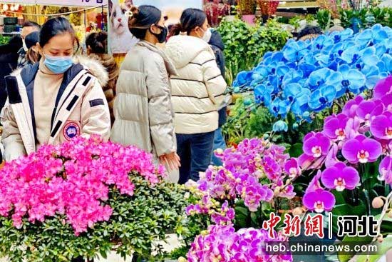 中新網河北新聞1月10日電 (杜楠 孫靜)近日,在秦皇島市的一處花卉市場內,處處洋溢著喜慶的氛圍。鴻運當頭、杜鵑花、茶花等深受市民喜愛。(完)