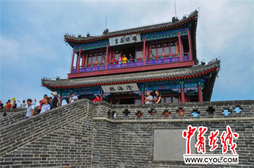 “兩京鎖鑰無雙地,萬里長城第一關。”登上具有“天下第一關”美譽的山海關城樓,既可眺望連海蒼山,又能感受古代中國的先進的軍事文化。它是明代萬里長城上迄今為止唯一保存完整的軍事城防體系,由關城、東西羅城、南北翼城及衛城、哨城等組成。這里匯集了大江南北、關內關外的多種風俗和文化,為世人打造一個彰顯歷史、富有韻味和游客參與的明清文化旅游景區。采訪團的記者們被雄偉壯麗的山海關景色深深吸引,紛紛拍照留念。