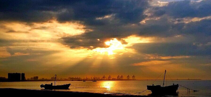 秦皇島市海港區西部海邊的晨曦。國慶長假期間,河北省秦皇島市秋高氣爽,海邊霞光妖嬈迷人(轉發)