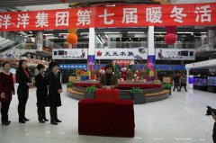 12月10日,2014年第一場瑞雪過后,氣溫下降,人們正春意盎然領略著初冬的威嚴。此時洋洋集團新洋洋花卉一樓大廳中央花團錦簇,“洋洋集團第七屆暖冬活動”的大紅橫幅下,人們排