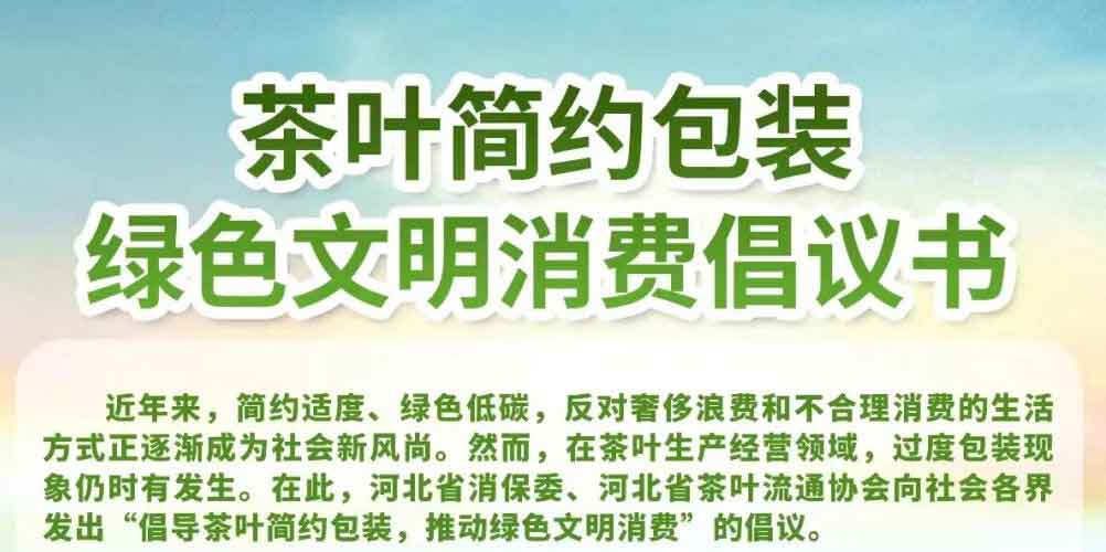 近年來,簡約適度、綠色低碳,反對奢侈浪費和不合理消費的生活方式正逐漸成為社會新風尚。然而,在茶葉生產經營領域,過度包裝現象仍時有發生。在此,河北省消保委、河北省茶葉流通協會向社會各界發出“倡導茶葉簡約包裝,推動綠色文明消費”的倡議。