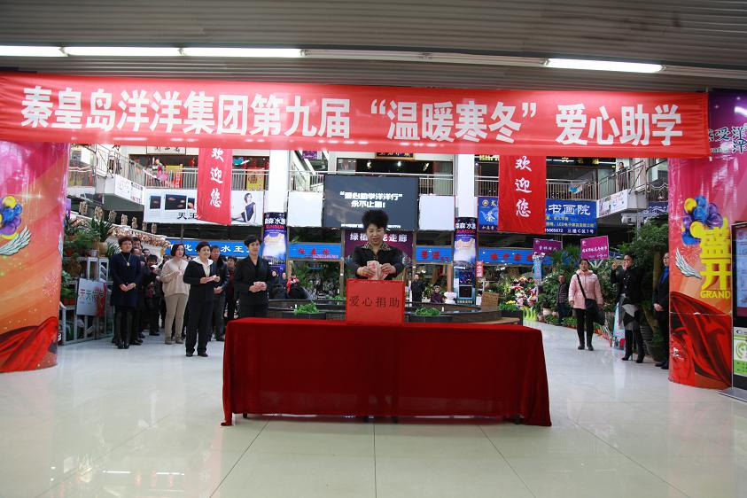 2016年11月28日,在蕭瑟寒冷的冬日,秦皇島市新洋洋花卉商場內,洋溢著春意般的溫暖,“秦皇島第九屆溫暖寒冬愛心助學募捐現場活動正在進行,新花卉、購物中心、古玩城約700余商戶共同參與愛心捐助活動中,共收到愛心捐款約5萬余元。