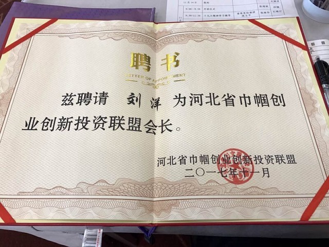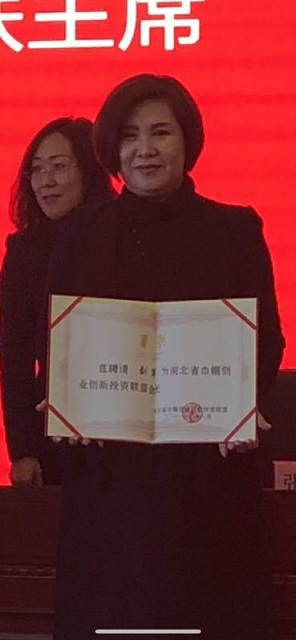 在本次河北省婦聯舉辦的“巾幗創業創新會議”上,河北省300多企事業單位進行參評“河北省巾幗創業創新投資聯盟”,劉洋女士以全票通過的選舉方,榮獲由河北省婦聯頒發的首屆“河北省巾幗創業創新投資聯盟會長”證書及榮譽稱號。