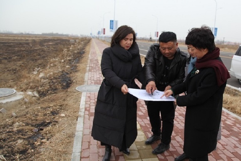 秦皇島市婦聯主席單慧英、副主席陸閨男、市女企業家協會會長劉洋現場查看圖紙