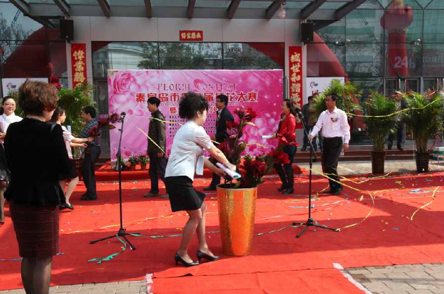 2014年5月1日上午9:00時,洋洋花卉第九屆“歐式風情”插花大賽暨婚影沙龍活動盛大開啟,集團總裁、林業局調研員、果桑站站長、港城大街辦事處主任以及燕山大學、中國環境管理干部學院、河北建材的團委領導也應邀參加了此次大賽。