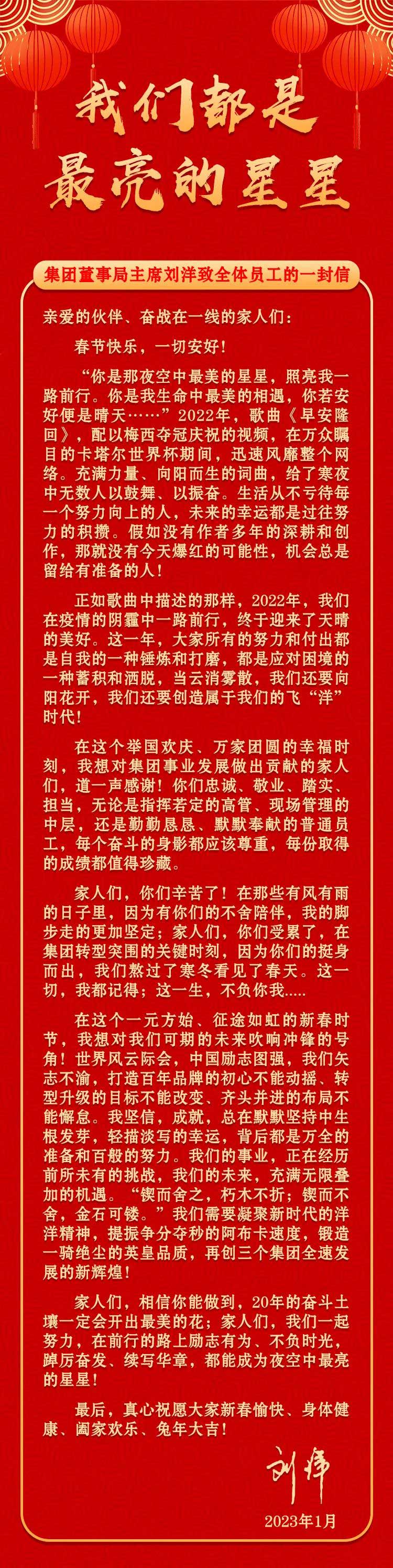 我們都是最亮的星星——河北英皇集團(tuán)、河北阿布卡集團(tuán)、秦皇島洋洋集團(tuán)董事局主席劉洋致全體員工的一封信