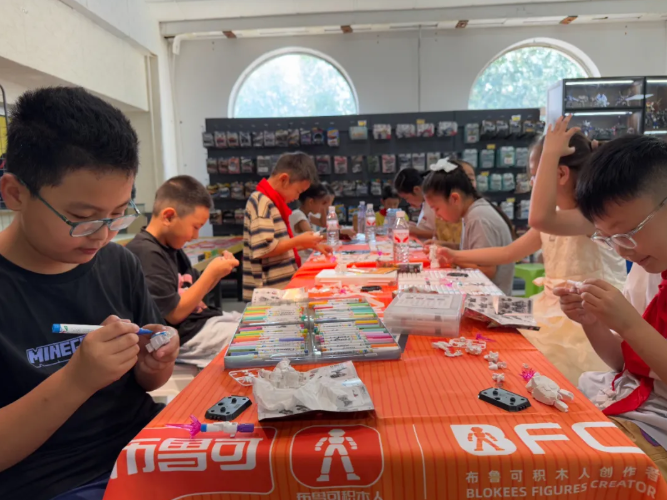 參與 “童趣·歡樂布魯可”積木人涂改賽的小朋友們個個全神貫注,靈巧的小手飛快拼搭布魯可積木。完成拼裝后,涂色環節開啟!孩子們用繽紛色彩為作品注入個性靈魂,想象力在畫紙上自由飛翔。