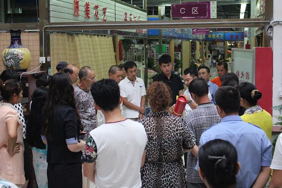 新花卉認真制訂了周密細致的演練預案。就演練的時間、路線、內容、對象作了具體的說明,演練的具體操作程序、疏散要求與注意事項作了一一講解,對各部門以及相關人員進行了具體的分工。為了確保演練活動按預案順利進行,要求明確疏散集合地點、疏散順序和注意事項。并根據現場消防設備由新花卉物業經理高志學、綜合部經理劉明進行講解消火栓及滅火器使用方法,在確認聽到警報后,全體人員須服從指揮,聽從命令,快速、安全進行有序疏散,不得收拾物品,互相擁擠推搡,不得大聲喧嘩、亂開玩笑。如發現有人摔倒,應即時扶起,幫助其一起迅速逃離危險地。