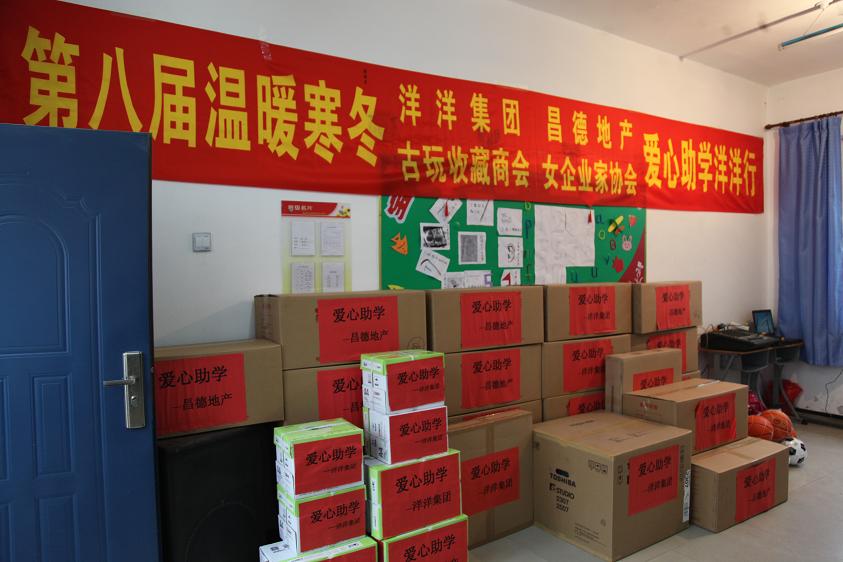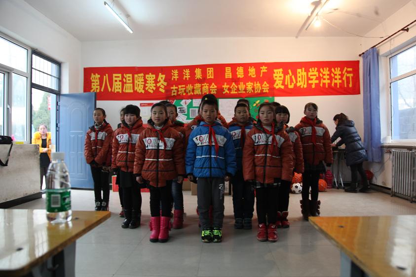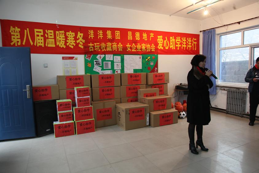 就在2015年12月9日的今天,“秦皇島市洋洋集團總裁劉洋女士”攜手秦皇島市女企業家協會代表、秦皇島古玩收藏商會代表和新花卉、古玩城、購物中心商戶代表共計30余人到青龍縣涼水河鄉六株坪小學把暖冬愛心活動籌集到的善款和購買的書包、糖果、運動籃球、足球等物品送到孩子們的手中,另外洋洋集團購買了復印和打印一體機捐贈給學校,同時給孩子們送去了洋洋人的關愛和社會的溫暖。