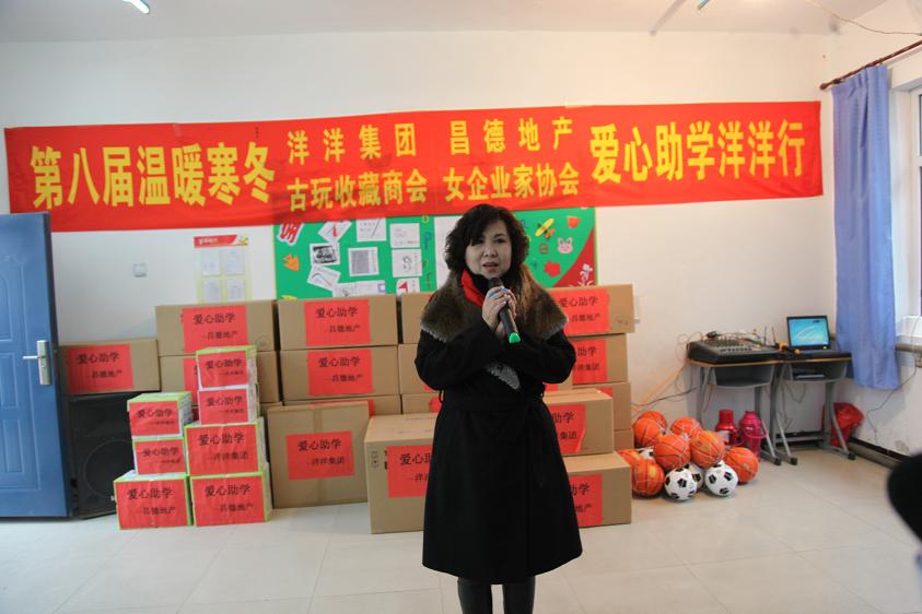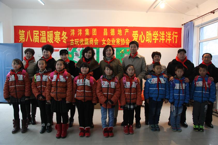 2015年12月9日秦皇島洋洋集團總裁劉洋女士攜手女企業家協會、古玩收藏商會代表親臨青龍縣涼水河鄉六株坪小學進行“愛的傳承”
