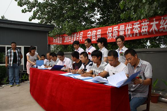 成績的取得離不開集團公司的支持與幫助,更離不開優(yōu)秀苗木經(jīng)濟人的誠信合作,為更好的推進苗木調運工作,掌握優(yōu)質苗木資源,實現(xiàn)公司“綠化+苗木”的品牌業(yè)務拓展,洋洋集團于2012年7月20日,在洋洋綠色植物園舉辦“2012年度重合同、守信用、保質量優(yōu)秀苗木經(jīng)濟人”頒獎及簽訂長期合作意向書活動。活動不僅邀請了數(shù)十家苗木公司代表、洋洋集團全體工作人員,更組織了洋洋花卉購物中心及洋洋古玩城的優(yōu)秀商戶代表參加,以展示洋洋(綠島)苗木公司的工作成績,其中活動分為四項: