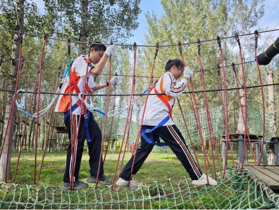 在飛躍叢林的項目中,孩子們挑戰自我,克服恐懼,每一次跨越都是成長的見證。